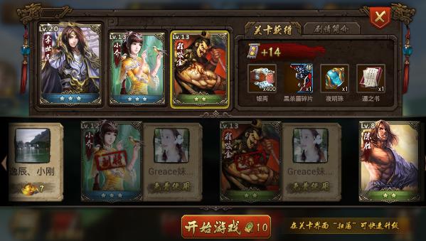 虽然诸葛亮说过妲己已不等于狐狸精,但我们追的这个妲己,那是跑的比狐狸还要快,好在这么多场仗打过来体能锻炼的不错,我们一路穷追不舍,最后终于成功地发现,妲己把我们带进了一个坑!即使是坑,我们也要奋勇直前。在本关卡,我们会获取14经验,还有可能获取银两或者是黑杀盾碎片、或者是夜明珠、遁之书。全部都是英雄升级所需要的物件,一起努力吧。
